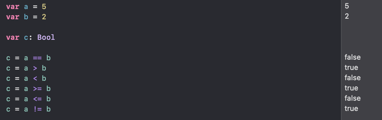 부호: Bool ? A : B 설명: Bool 값이 참이면 a, 거짓이면 b를 반환한다