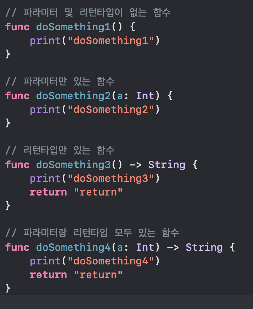 물론 파라미터나 리턴타입이 여러개가 있는 함수도 있지만 크게 나누자면 저렇게 4개로 나눌수 있음
