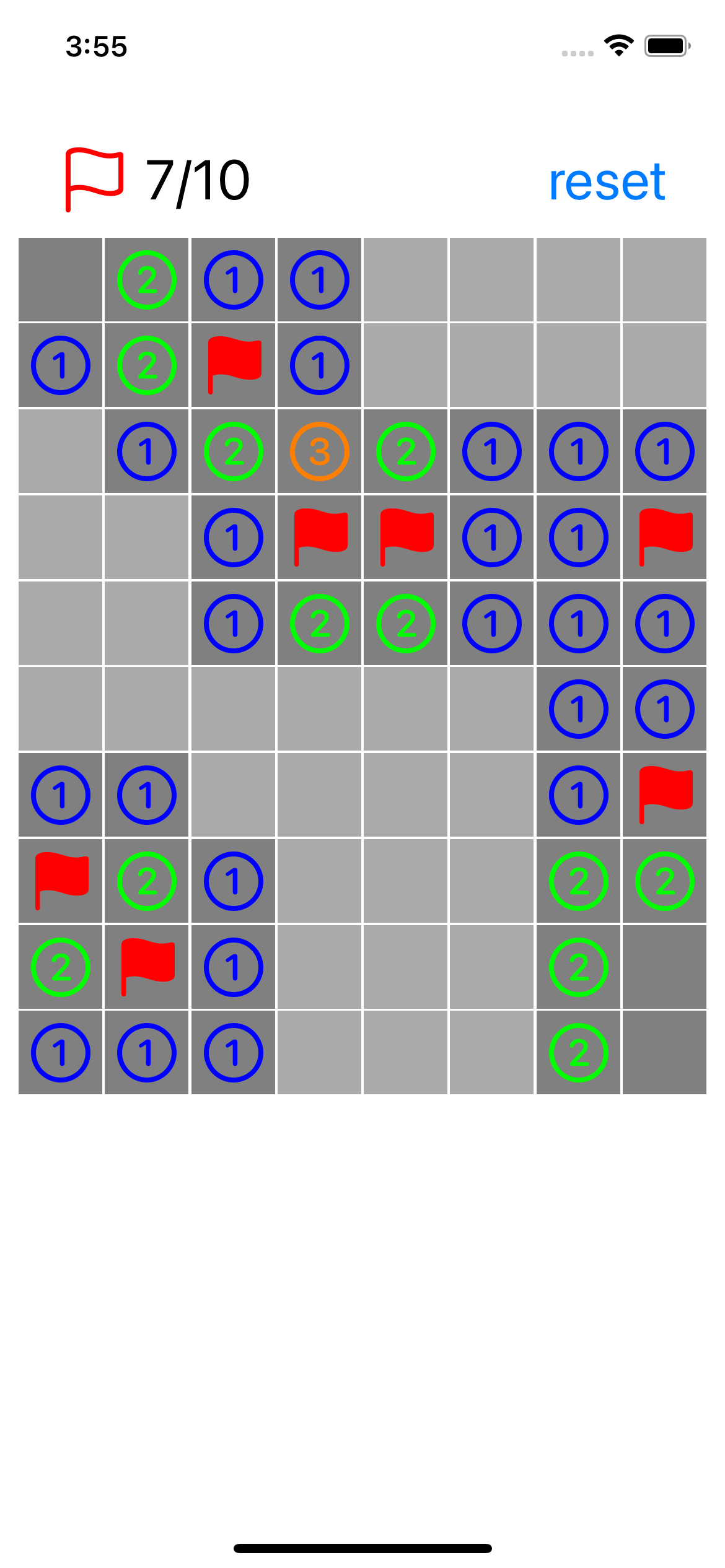 - nearMine(count: Int) - 근처에 지뢰가 있는 맵 연관값으로 근처에 있는 지뢰의 개수를 가지고 있다